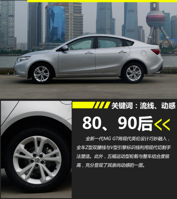 MG GT将现代英伦设计巧妙融入,全车Z型双腰线和V型引擎标识线利用现代切割手法塑造。尾部拱门式造型,更是将英伦艺术美学体现的恰到好处。此外,五幅运动型轮毂与整车结合度极高,充分显现了其崇尚动感的一面。如此激进大胆且不失品味的设计风格无疑会对80后、90后这些潜在消费人群产生难以抵挡的吸引力。