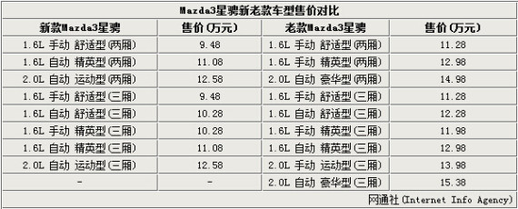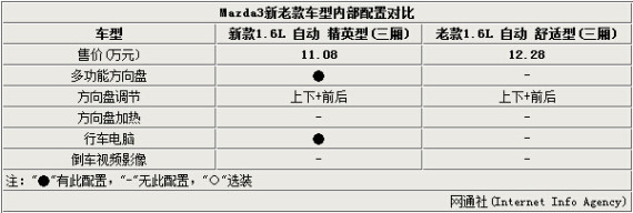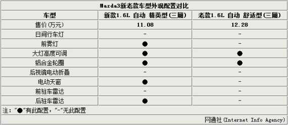 长安马自达改款Mazda3星骋日前已正式上市,该车9.48-12.58万元的售价区间以及升级后的外观造型让人眼前一亮。针对该车与老款车型之间的变化,网通社针对星骋的主力车型——星骋1.6L自动 精英型(三厢)和老款1.6L 自动 舒适型(三厢)进行了对比,前者在售价低1.2万元的前提下,配置增加了5项,性价比得到进一步提升。
