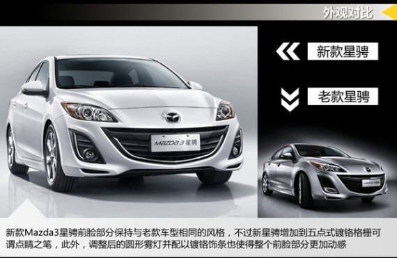 新款Mazda3星骋是由长安马自达位于南京市江宁开发区的研发中心投入运营后的第一款本土研发改款车型。新款Mazda3星骋在外观上与老款车型最大的区别在于其增加的五点式镀铬格栅以及调整之后的圆形格栅,尾部则中央切割线更加突出,更线层次感。
