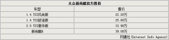 尚酷作为大众入门级跑车,其独特的外观与充沛的动力,无疑吸引了大部分喜爱这款车型的消费者,而其在配置、外观以及内饰上做出的改变已经足够征服消费者,而其新款的售价同样具有很强的诱惑力。(网通社 2014年10月17日 北京报道)