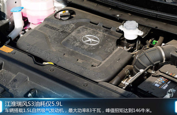 动力方面,江淮瑞风S3新车搭载一台1.5L自然吸气发动机(代号HFC4GB2.3D),最大功率83Kw,峰值扭矩为146Nm,最高时速为175Km/h;与之相匹配的变速箱可选择5速手动、6速手动以及CVT无级变速箱,匹配上述变速箱的瑞风S3,工信部的综合油耗为百公里5.9L。