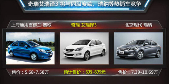 对于这款奇瑞全新的A0级车,无论在车身尺寸、外观造型等各个方面,沈浩杰先生认为:艾瑞泽3是一款全面超越同级A0级车型的产品。主要的竞争对手,艾瑞泽3也瞄准了目前合资的主流小型车,上海通用雪佛兰赛欧、北京现代瑞纳,东风悦达起亚K2等产品。