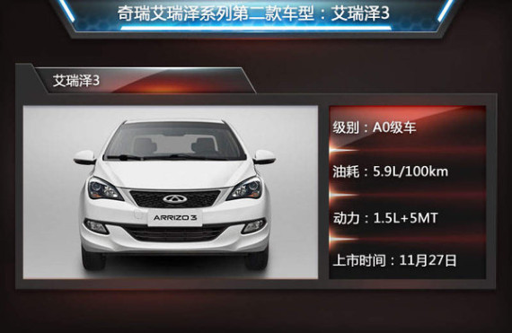 奇瑞汽车在经历战略转型后,旗下产品系列逐步调整为艾瑞泽、瑞虎、风云以及QQ四大系列。为进一步完善旗下的产品阵容,继艾瑞泽7、瑞虎5以及瑞虎3三款基于正向研发流程打造的车型后,奇瑞将于11月27日推出旗下第四款采用全新LOGO奇瑞标识的产品“艾瑞泽3”。这款定位A0级都市家用小车的产品,上市后将与目前国内热销的雪佛兰赛欧、现代瑞纳等车型一较高下。值得一提的是,这款全新小车采用ACTECO 1.5L自然吸气发动机与5速手动变速箱的动力组合,百公里综合油耗仅为5.9L,拥有出众的燃油经济性。