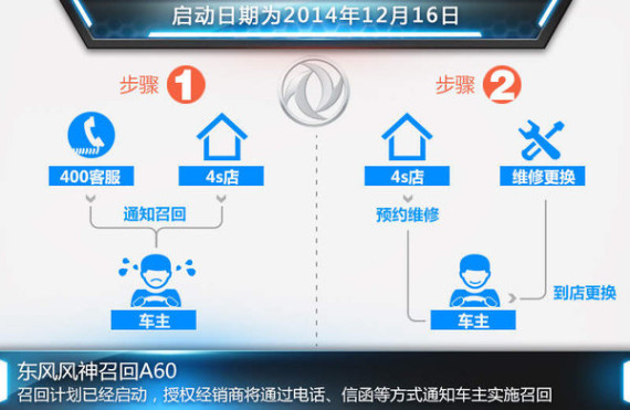 对于此次召回事件的相关信息,网通社以消费者的身份致电东风风神客户服务中心官方400服务热线并进行咨询。对方表示:已收到厂商召回通知,召回计划已于2014年12月16日启动,将以电话、短信等方式通知车主实施召回。同时,车主也可拨打官方客户服务热线,并提供车辆的车架号,以确认车辆是否涉及此次召回。