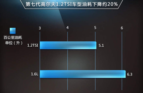 根据工信部目前所公示的相关信息,搭载1.2TSI涡轮增压发动机的全新高尔夫,百公里综合油耗为5.1L,相比目前与其动力相当的1.6L自然吸气车型6.3L(自动挡车型)的油耗数据而言下降了约20%,在燃油经济性方面的表现十分突出。