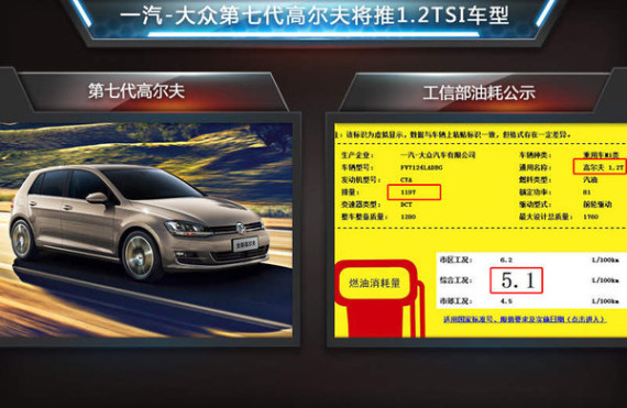此前大众品牌旗下首款采用MQB平台打造的第七代高尔夫 (配置|询价)正式在华投产上市,先期推出了1.6L和1.4TSI两种排量共消费者选择。近日,工信部透露,一汽-大众将推出搭载1.2TSI小排量增压发动机的车型,相比目前1.6L车型而言,在燃油经济性上得到了大幅提升,百公里油耗下降16%。