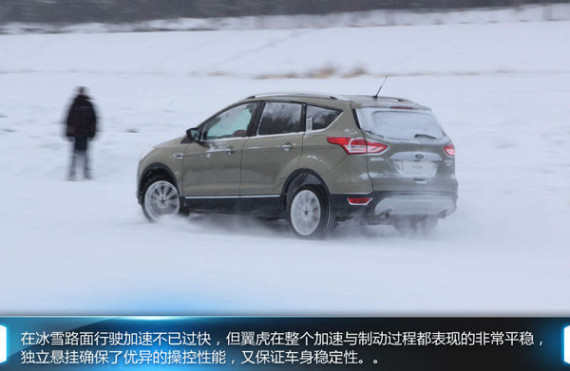 1.5T搭配6速手自一体变速箱,同级领先的高达133Kw/6000rpm)的动力和240Nm/2000-4500rpm的最大扭矩,让新款翼虎在冰雪路上能尽情的撒欢(虽然难免会有打滑的现象)。新款翼虎前部采用麦弗逊独立悬挂系统及大尺寸前防侧倾稳定杆,后部采用“刀锋”式全独立多连杆悬挂后悬挂+后防侧倾稳定杆,既提高了悬架刚度,又确保了优异的操控性能,即便是在冰雪路面,也能保证车身稳定性。