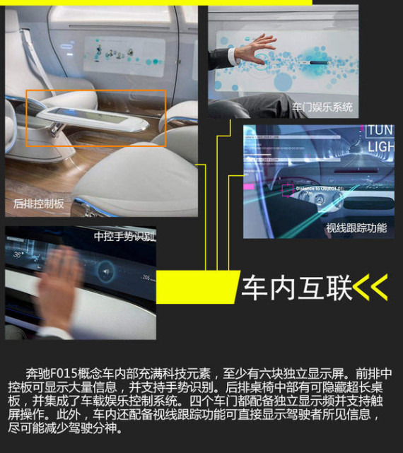 正如蔡澈博士所说,奔驰F015已经发展成一个移动互联空间。日益完善的车联网系统强化了人机互联的自动化、信息化及智能化,同时带动了一些列依托于车联网的高科技产业与技术,而传统的人车机械沟通日渐弱化。车联网让人与车从未如此紧密,而自动驾驶让人与车从未如此疏远,人车沟通的方式与节奏正渐渐改变。