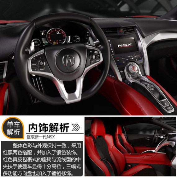 事实上,在2013年新一代NSX就已亮相了其概念车型。据了解,此次发布的量产版车型在车身尺寸方面较概念车型有所提升。其长宽高分别为4470/1940/1215mm,轴距为2630mm。从外观上来看,新车由红黑两色搭配而成。正像讴歌的设计师所说,全新NSX量产版代表着讴歌超级跑车最佳的形态和迷人的设计。