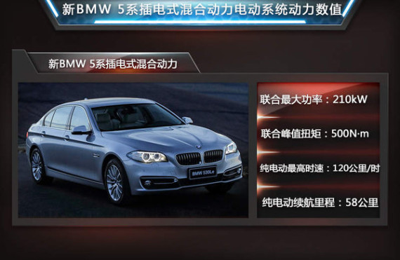 新BMW 5系插电式混合动力是一款由华晨宝马专为中国市场自主研发的全新产品,利用了宝马集团专为新能源车而研发的eDrive电力驱动技术,其核心诉求是电力驱动。充分利用了BMW内燃机与同步电动机两者的优势,既能做到零排放,又可实现长距离旅行。自2011年量产车型推出至今的3余年时间中,经历多项技术完善以及严苛测试在2015年1月15日正式在华上市,也成为了华晨宝马研发历史上的一座里程碑。