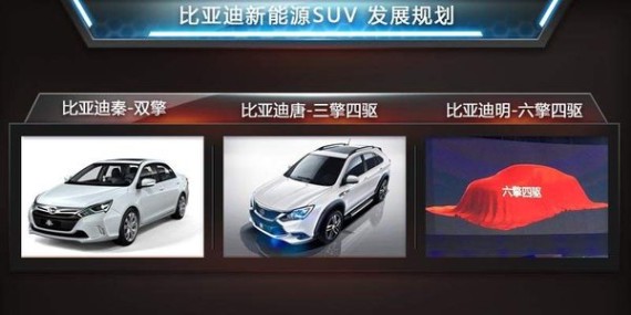 目前比亚迪已规划了以“朝代”命名的车型系列,这些产品均是针对民用市场的新能源车型,其中多以“插电式混合动力”为主,覆盖轿车、SUV以及MPV三种车型。按照目前的比亚迪产品规划来看,唐、宋、元、明等SUV产品超半数席位,后续企业还规划推两款新能源SUV。王传福说:“SUV是中国目前增长最迅猛的市场,我们也会强化这一细分市场。”