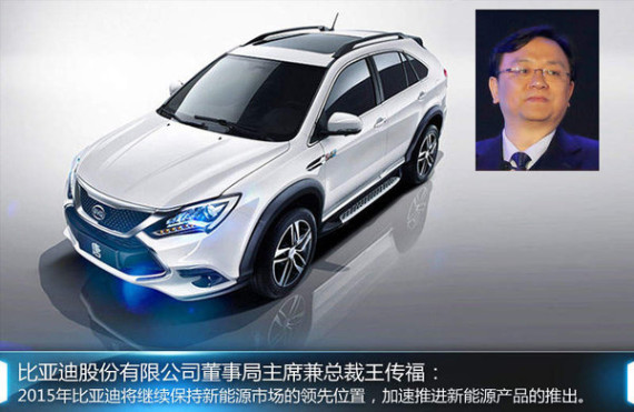 2014年国内新能源汽车销量达到74,763辆,同比实现大幅增长,其中比亚迪销售的新能源车占到近三成的销量份额。对于这一销售成绩,日前比亚迪股份有限公司董事局主席兼总裁王传福先生,向百余家媒体表示:“2015年比亚迪将继续保持新能源市场的领先位置,加速新能源产品的推出。”同时针对未来新能源市场,比亚迪也公布了未来三年的产品规划,将相继推出包括唐、宋、元等7款新能源车型。