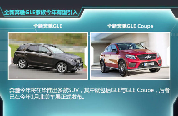 在今年1月举办的底特律车展上,奔驰拉开了推出新车的序幕,不但推出了GLE Coupe,同时还推出基于全新C级和GLE Coupe打造的AMG Sport系列车型,上述车型均有望在年内陆续引入国内。同时在国内市场方面,奔驰品牌先后推出了全新B级以及迈巴赫S级车型,足以看出奔驰今年在华推出新产品的决心。此外,值得注意的是,SUV产品也是今年的重点,全新一代GLC、GLE均有望在年内推出并引入国内市场。