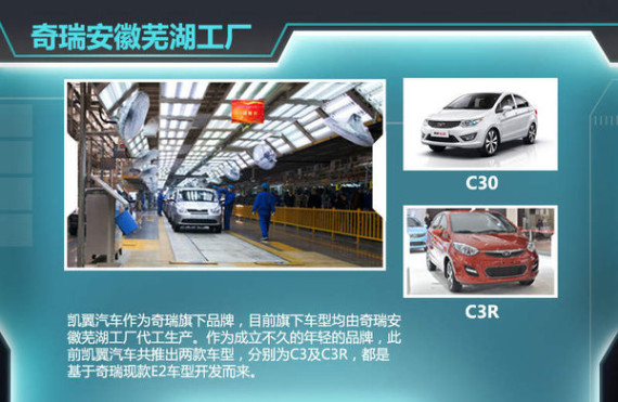 目前凯翼旗下C3、C3R车型基于老E2平台开发而来,均由奇瑞安徽芜湖工厂代工生产,其首款SUV凯翼CX3也将由此工厂代工,目前QQ、艾瑞泽7、瑞虎3、风云等系列车型均产自芜湖工厂。此前按照凯翼的既定规划,整合优势资源,采用轻资产运营模式,旗下车型将由其他工厂代为生产。由此看来凯翼选择母公司奇瑞代工,其后续规划MPV、CROSS车型也将由奇瑞代工生产。