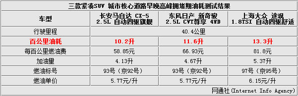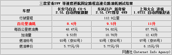 此前国内成品油价格迎来了13连跌,其中最为私家车常用的93号汽油下跌了0.5元/升,不过随着全球能源问题的影响,相信未来成品油价格终将出现持续上涨,并仍将成为消费者用车主要的费用支出。而目前SUV已成为国内发展最快是汽车市场之一,其中各大合资品牌所竞相角逐的紧凑型SUV则是重中之重。而下面我们则为您测试目前市面上较为火热的三款紧凑SUV(长安马自达CX-5、东风日产新奇骏和上海大众途观)的日常油耗情况,看看它们是如何节能减排的。