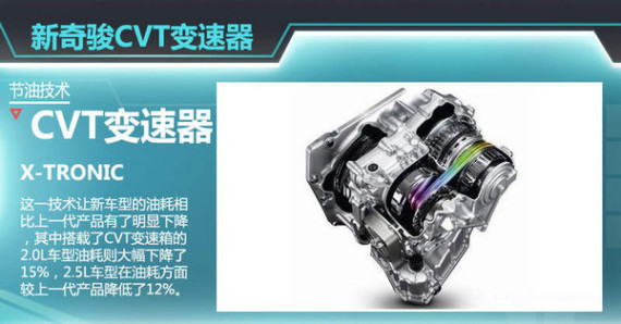 东风日产新奇骏在本次油耗评比的三款车型中最为突出的节油技术,便是其所匹配的新一代X-TRONIC CVT无极变速器。这一技术让新车型的油耗相比上一代产品有了明显下降,其中搭载了CVT变速箱的2.0L车型油耗则大幅下降了15%,2.5L车型也在油耗方面较上一代产品降低了12%。