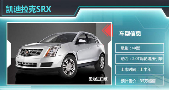 根据凯迪拉克规划:2015年将推出凯迪拉克第三款国产车型。凯迪拉克新任总裁约翰·德·尼琛(Johan de Nysschen)在接受媒体采访时表示:凯迪拉克SRX在华国产。目前,凯迪拉克已推出的两款国产车型ATS-L、XTS均为轿车。作为目前在华热销的SUV车型,SRX有望成为凯迪拉克在华第三款国产车型。