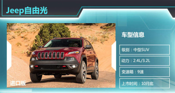 Jeep首款国产车也将于今年正式推出,锁定为自由光。据悉,国产自由光最快将于10月底推出,在长沙工厂投产。从之前曝光的谍照来看,国产自由光在外观及内饰设计方面将基本与进口版保持一致。动力方面,预计将搭载2.4L(最大功率130kW)和3.2L(最大功率200kW)自然吸气发动机。与两款发动机匹配的是9速手自一体变速箱。此外值得一提的是,自由光搭载的发动机也将于2016年二季度实现国产。