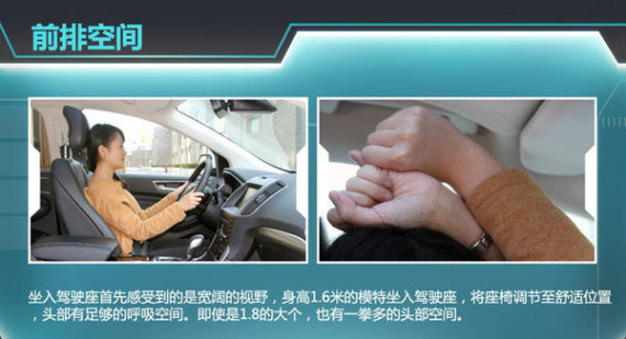 2850mm的轴距为国产锐界的空间提供了更大的可能性。上车后将座椅调至舒适的位置,宽阔的视野让人感觉舒适。再来实地检验下这款车的空间表现,身高1.6米的模特坐入驾驶座,前排头部有两拳多的空间,即使是1.8米大高个乘坐时也会有一些富余。第二排空间非常宽敞,完全可以翘着二郎腿嗑瓜子。第二排中间地板采用平整的设计,坐在中间的乘客也能有舒适的乘坐体验。