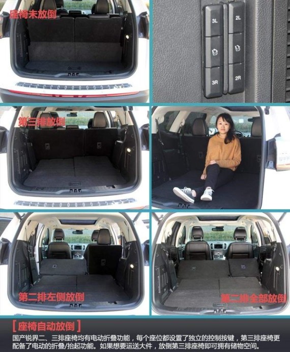值得一提的是,国产锐界二、三排座椅均有电动折叠功能,每个座位都设置了独立的控制按键,第三排座椅更配备了电动的折叠/抬起功能,方便用户不同使用环境下的灵活空间变化。不得不说这个非常人性化的设置打动了小编的心。