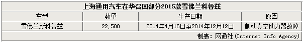 雪佛兰作为美国通用集团旗下汽车品牌之一,自2005年进入中国市场以来,已累计销售超过250万辆汽车。其旗下产品众多,覆盖了多个细分市场。近日,中国国家质检总局官方网站发布,因真空助力器存在缺陷,上海通用汽车将在中国范围内召回部分2015款雪佛兰新科鲁兹轿车。据统计,此次将有22,508辆车受到影响。