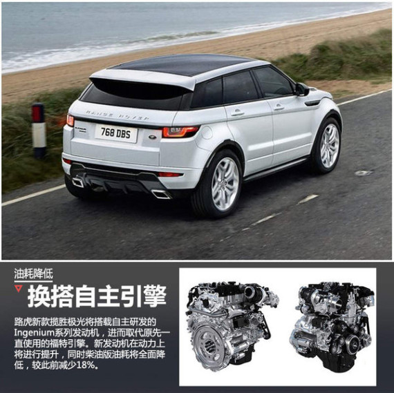 路虎揽胜极光是该品牌销量最高的车型,但是车辆此前一直使用福特四缸引擎。伴随捷豹路虎自主研发的Ingenium系列发动机全面投产,路虎旗下车型也将全面换装该款发动机。近日,捷豹路虎官方发布:路虎旗下新款极光将在3月开幕的日内瓦车展上亮相,新车将搭载全新“自主”研发引擎,相比福特引擎动力将有所提升,同时油耗将全面降低。此外,新款极光外观还将进行改进,采用全新样式的LED大灯设计,相比现款车型更加时尚。