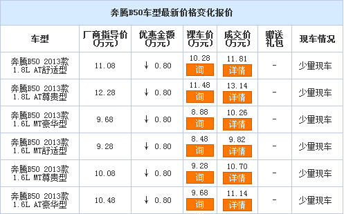 新浪银川汽车讯 近日,编辑从宁夏大世界店奔腾4S店了解到,奔腾B50现车销售,购车钜惠0.8万,送12000元大礼,感兴趣的朋友可以来电咨询或电话垂询。