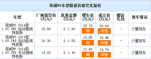 新浪银川汽车讯 近日,编辑从上汽荣威宁夏荣通4S店了解到,荣威W5现车销售,颜色可选,目前购车部分车型可优惠1.80万元,感兴趣的朋友可以到店咨询或电话垂询。