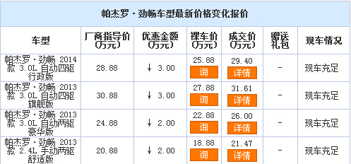 新浪银川汽车讯 近日,编辑从广汽三菱宁夏金胜通4S店了解到,帕杰罗劲畅现车销售,颜色可选,部分车型优惠3万元。感兴趣的朋友可到店咨询或电话垂询。