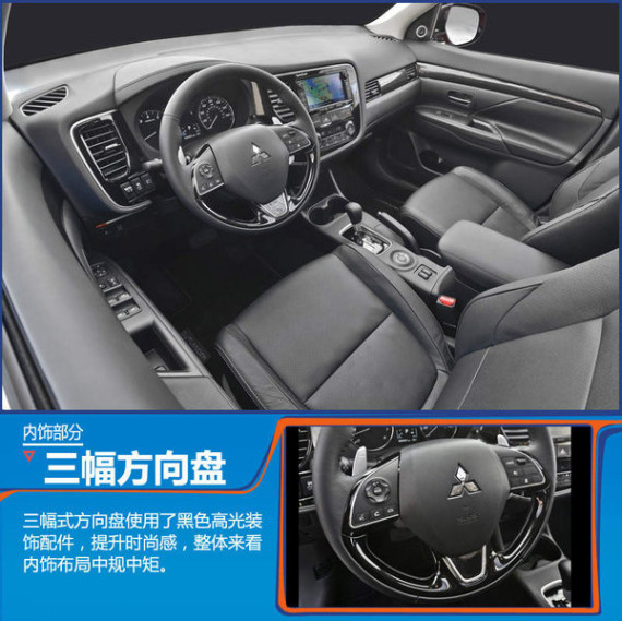全新欧蓝德内饰给人以高档的感觉,中控台上方使用软质材料,这也符合该级别车型所应该具有的水平。中控台与现款欧蓝德相比改动不大,依旧是中规中矩,各功能区划分明确;双圆式仪表盘也无变化,各项数据一目了然;多功能方向盘可实现蓝牙、音量控制等功能。