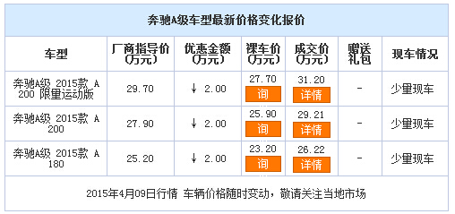 新浪银川汽车讯 近日,编辑从宁夏利之星奔驰4S店了解到,奔驰A级现车销售,颜色可选,目前购车部分车型可优惠2.00万元,感兴趣的朋友可以到店咨询或电话垂询。