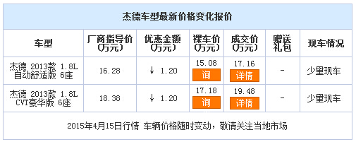 新浪银川汽车讯 近日,编辑从东风本田银川天银4S店了解到,杰德现车销售,颜色可选,目前购车部分车型可优惠1.20万元,感兴趣的朋友可以到店咨询或电话垂询。