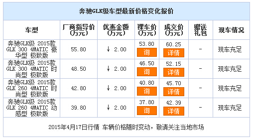 新浪银川汽车讯 近日,编辑从宁夏利之星奔驰4S店了解到,奔驰GLK级现车销售,颜色可选,目前购车部分车型可优惠2.00万元,感兴趣的朋友可以到店咨询或电话垂询。