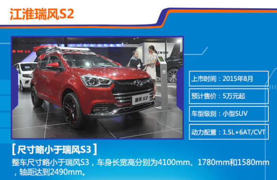 新浪汽车讯 2014年江淮旗下乘用车共计销售19.56万台,而今年目标销量直接提高到30万,增幅达75%,这在自主品牌市场占有率逐年下降的态势中显得极为另类。近几年国内小型SUV车型异军突起,成为SUV领域中增长最快的细分市场,借助这阵东风江淮首款小型SUV瑞风S3销量表现抢眼。江淮汽车对小型SUV市场前景充分信心,为与瑞风3形成差异化产品布局,此次针对SUV市场规划推出小型SUV。日前,网通社从江淮官方获悉,江淮第二款小型SUV瑞风S2于上海车展正式首发亮相,并将于今年八月正式上市,预计售价5万元起。