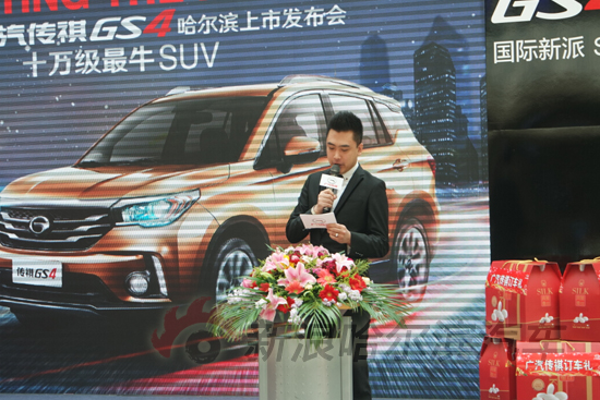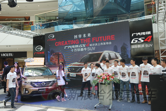 4月25日,广汽传祺GS4 (配置|询价) 哈尔滨区域上市发布会在哈西万达隆重举行,广汽传祺东北区域经理、哈尔滨博实信达经销店总经理、哈尔滨区域主流媒体记者以及众多传祺车友们,共同领略了传祺GS4的时尚魅力。