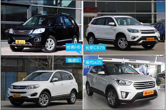 | 车型名称 | 传祺GS4 | 哈弗H6 | 长安CS75 | 瑞虎5 | 现代ix25 |