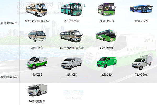 2011年底与江铃集团合作的纯电动轿车已成功通过碰撞试验和1.5万公里可靠性试验,并获得工信部235批公告,列入推荐目录。同时,陆地方舟小学生专用校车、专用客厢车、7米客车等三款车获得工信部产品公告。