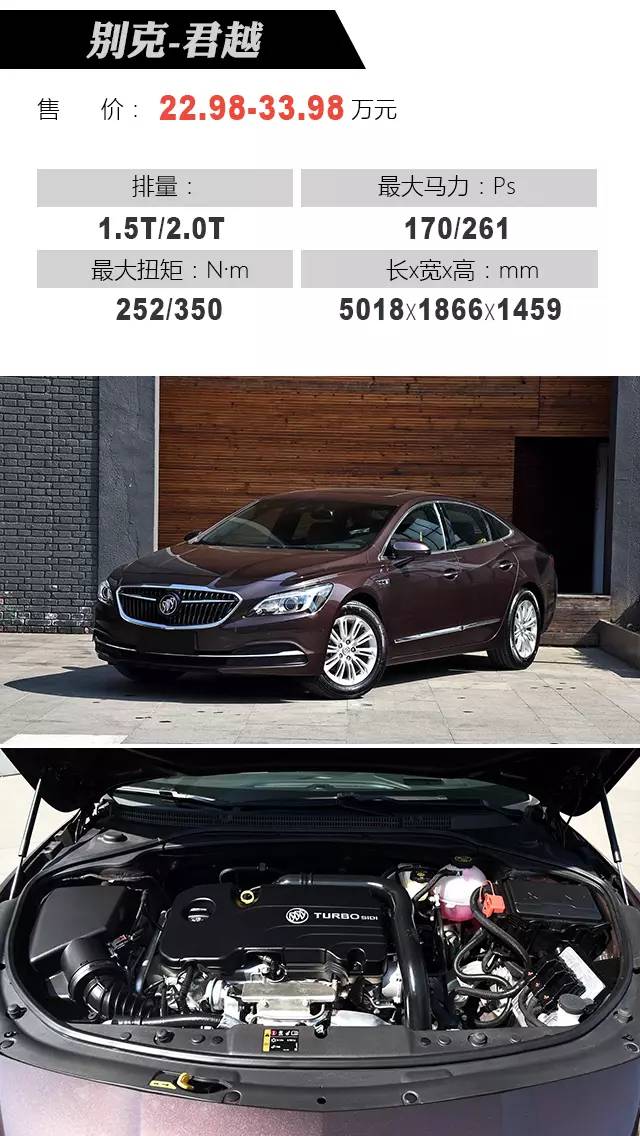 很多人买第二辆车的时候除了照顾到家庭的需要之外,还会想要兼顾商务用途,别克君越就非常符合这一要求,市场定位于B+级别,无论是车身尺寸还是轴距都领先于竞争选手,更加有气场,内饰的用料做工更加是非常符合商务用途,完全能够媲美豪华品牌。