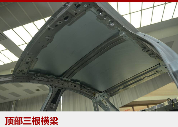 顶部三根横梁,由215毫米宽的加强板构成,等于普通车型车顶的多道加强筋累加,分别对应A、B、C柱,多点受力,极端翻滚中有效抑制车身变形。
