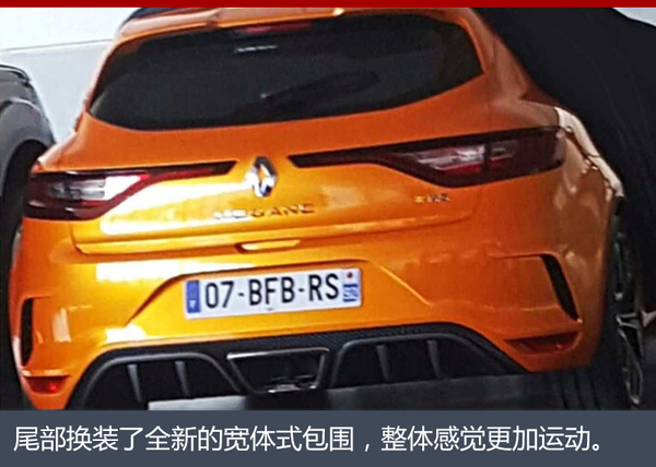 车尾部分,全新梅甘娜R.S.换装了全新的宽体式包围,整体感觉更加运动。另外,新车尾排依然保持现款车型的中置布局,搭配车底部的扩散器,更具运动气息。同时新车保持了上代车型的中置“倒梯形”排气设计。