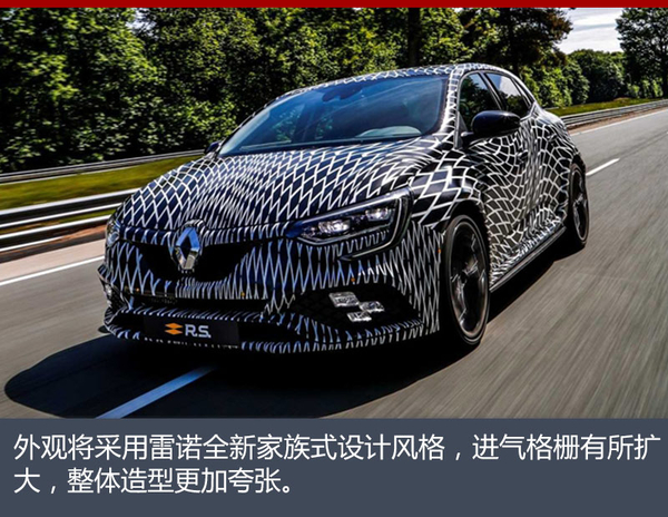 外观方面,新车将采用雷诺全新家族式设计风格,进气格栅有所扩大,整体造型更加夸张,视觉效果更加激进。两侧雾灯区为三颗LED光源设计,看起来十分犀利。此外,新一代梅甘娜R.S.将由双门掀背跑车变成一款仅提供5门掀背车身结构的紧凑型轿车。