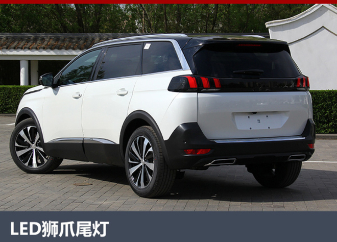 5008的车尾设计层次感十足,灯车尾处线条棱角分明,整体设计更加方正。从A柱延伸至D柱的银色饰条使得新一代5008的尾部看起来更加垂直。尾部两侧“狮爪”式尾灯加入LED光源,点亮效果十分醒目。此外,底部双边单出式尾排设计,使整车更显大气。