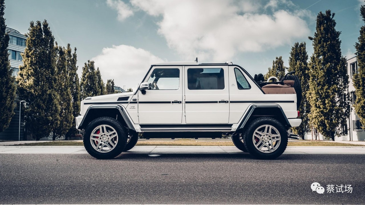 作为梅赛德斯-迈巴赫的首款越野车,G650 Landaulet限99辆,已售罄,将于今秋起交付客户。新车长5,345毫米,轴距加长578毫米至3,428毫米,高2,235毫米,采用门式桥设计,离地间隙450毫米,配备可100%锁止的差速锁和分动箱、22寸轮毂和325/55R22轮胎、加宽轮拱、后置备胎和第3刹车灯、前后车底护板。车侧配电动踏板,方便上下车。6.0升V12双涡轮增压发动机最大功率和扭矩463千瓦(630马力)、1,000牛·米。前排为封闭式座舱,前后排之间可由升降式玻璃分隔,玻璃可一键切换为非透明。后排采用电动软顶设计,双座椅来自S级,具备按摩和加热功能。中央扶手内置折叠桌,杯架可加热和降温。此外,后排中控还可控制内部照明和软顶开关,搭配10寸液晶屏、手套箱和扶手。内饰另有丰富配色可选。迈巴赫G650 Landaulet在麦格纳·斯太尔位于奥地利的Graz工厂生产。(Mercedes-Benz、TG)