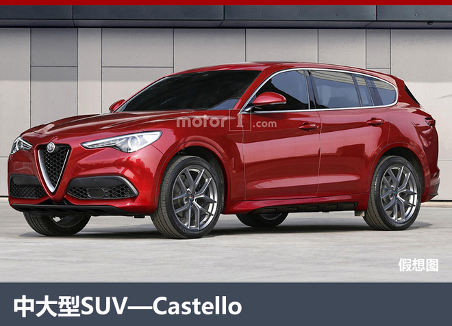 另1款SUV有望作为阿尔法·罗密欧的旗舰型车型,定位于中大型SUV,或被命名为Castello,外观与Stelvio极为相似,预计搭载6缸发动机,主要的竞争对手将是宝马X5、奥迪Q7等车型。