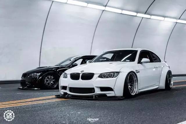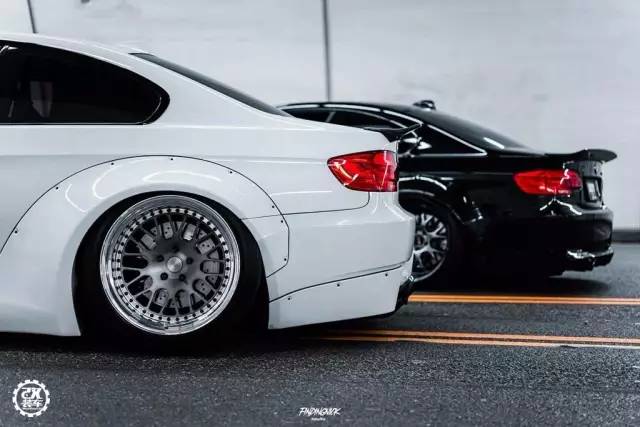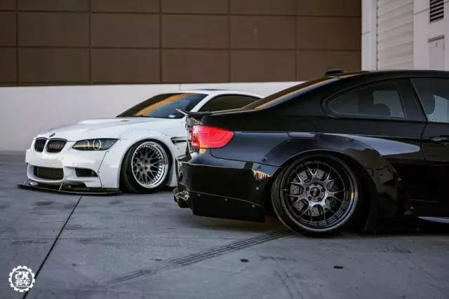 今天带来的两辆E92 M3都改装了LibertyWalk的宽体套件和气动避震,一辆黑色和一辆白色,细节上各有不同,黑白双煞停在一起带来独特的视觉感受。