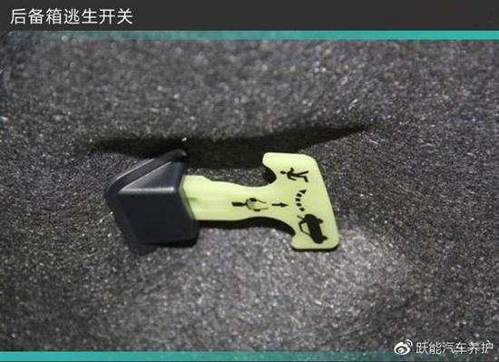 这个功能在关键时刻作用非常大。带这个功能的车,在后备厢内侧有一个拉环,拉一下后备厢盖就打开了。如果车的后备厢内没有这个功能怎么办?其实多数车型的后备箱中都有一个机械开关可以打开后备厢盖,位置就是锁块附近。