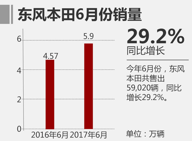 今年以来,国内汽车市场增速逐渐放缓,并开始出现负增长局势。而在相对低迷的大背景下,东风本田仍然保持了稳定的增速。网通社从东风本田官方获悉,今年6月份,东风本田共售出59,020辆,同比增长29.2%。其中全新思域以及XR-V (配置|询价)保持了月销破万的成绩,成为当之无愧的销量主力。