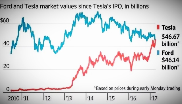 6月23日,特斯拉股价达到历史新高,从年初至当日,股价累计上涨70%左右,市值相继超过福特和通用,成为美国市值最高的汽车制造商。