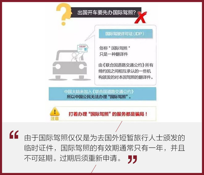 但据有关专家介绍,国人从一些“国际驾照的代理机构”处购买的,所谓的“国际组织”签发的“国际驾照”,可以说是毫无意义的一纸空文,韩国某驾校的负责人介绍说,国际驾照只能在日内瓦条约加盟国之间使用,而且只有加盟国的指定机构才有资格颁发这种IDP(国际驾驶许可)。但由于中国目前尚未加入此公约,国外颁发的国际驾照不能在中国使用,因此内地也就没有任何机构有资格颁发这种IDP。但是在国内有某宝很多卖家和各种机构,却声称可以在国内考取国际驾照!