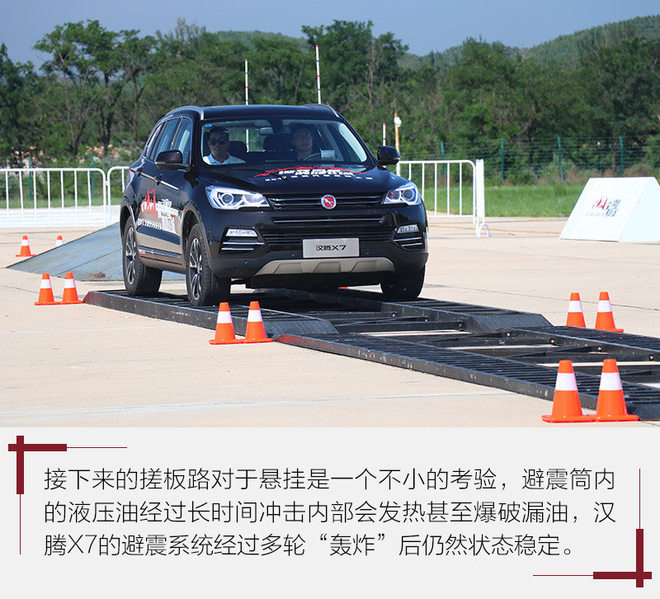 对于SUV来说,悬挂的好坏直接影响了整车通过性和驾乘舒适性。我们汽车避震系统中的避震筒是靠内部油压来完成缓冲冲击作用的,当车辆长时间经过冲击路段时,避震筒上下运动频次增强势必会加大其内部温度甚至会爆裂发生减震器漏油情况。而汉腾X7的避震器经过多次测试后减震效果依然没有发生任何变化,车内乘坐也感受不到强烈的冲击感。